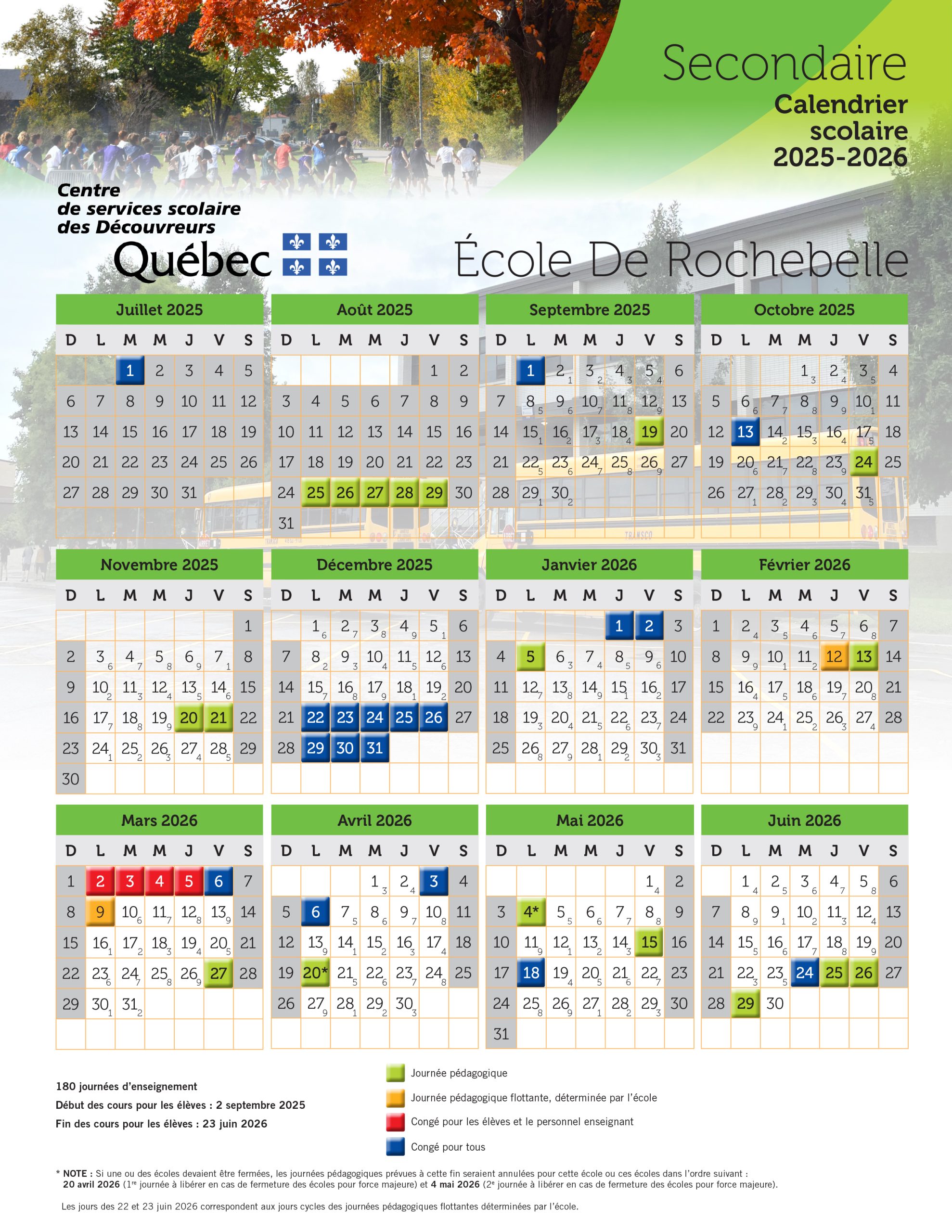 À noter que le le 20 avril et le 4 mai seront, dans l’ordre, des journées pédagogiques à libérer pour la tenue de cours réguliers si l’école doit être fermée en raison de force majeure